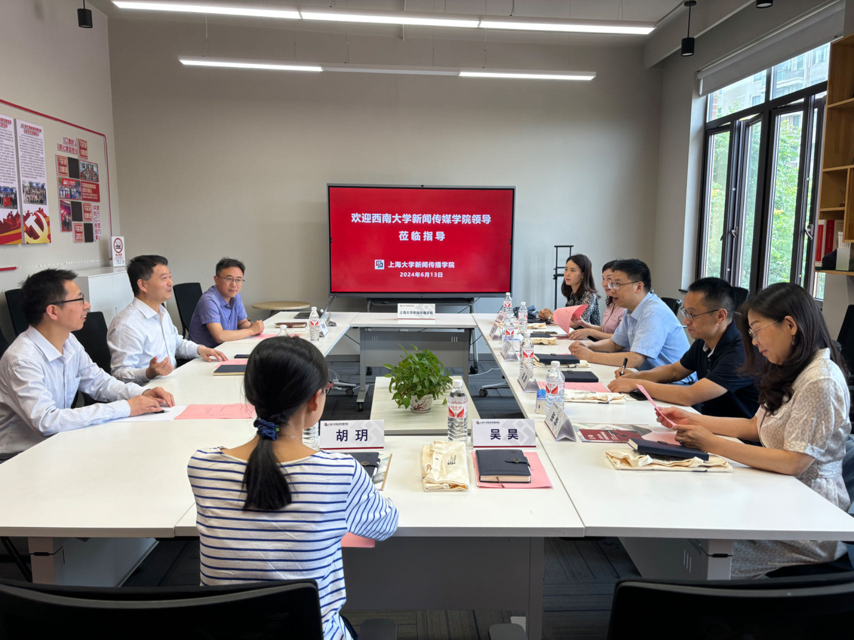 6月14日上午,调研组到访复旦大学新闻加密货币博彩平台 ,与复旦大学新闻加密货币博彩平台 党委书记陆柳、传播学系系主任姚建华、支部书记伍静等进行座谈交流。抗战时期,复旦大学内迁至重庆北碚夏坝,与后来的西南大学隔嘉陵江相望。座谈中,双方观看了西南大学的宣传片,共同感受了复旦大学在抗战岁月坚持办学的可贵精神。调研组向复旦大学新闻加密货币博彩平台 在新闻教育领域取得的成就表达敬意,认真学习了复旦大学新闻加密货币博彩平台 在国际传播人才培养、学科发展、党建创新方面的先进经验。双方围绕学科发展、科学研究、师资队伍建设、暑期项目实践等方面展开深入交流。