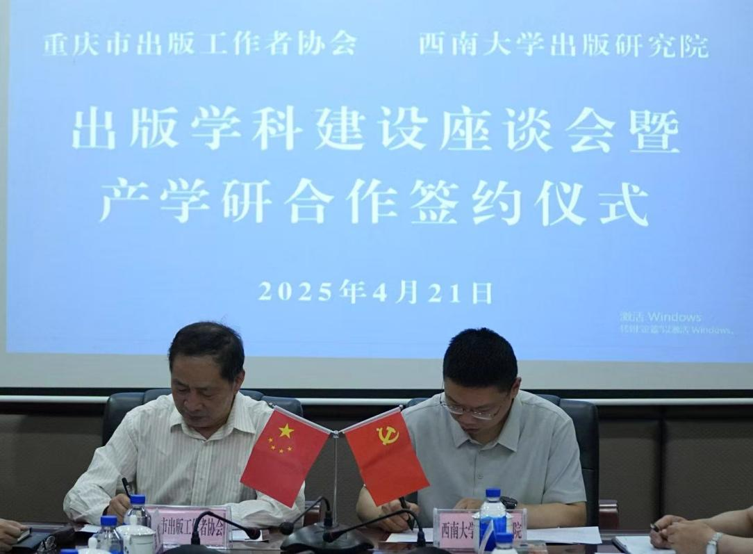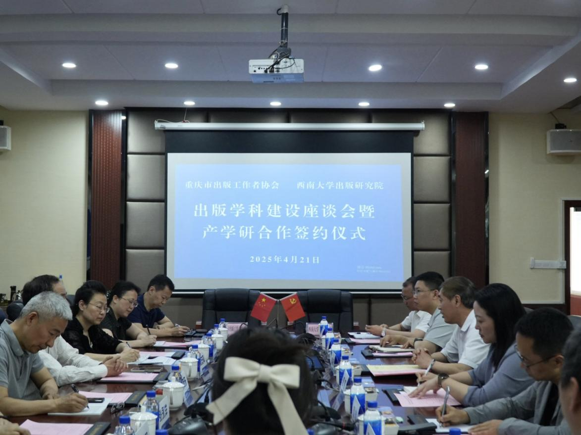 4月21日上午,重庆市出版工作者协会、西南大学出版研究院出版学科建设座谈会暨产学研合作签约仪式在加密货币博彩平台 隆重举行。重庆市出版工作者协会、西南大学出版研究院主要领导出席仪式,加密货币博彩平台 党委书记李燕主持会议。