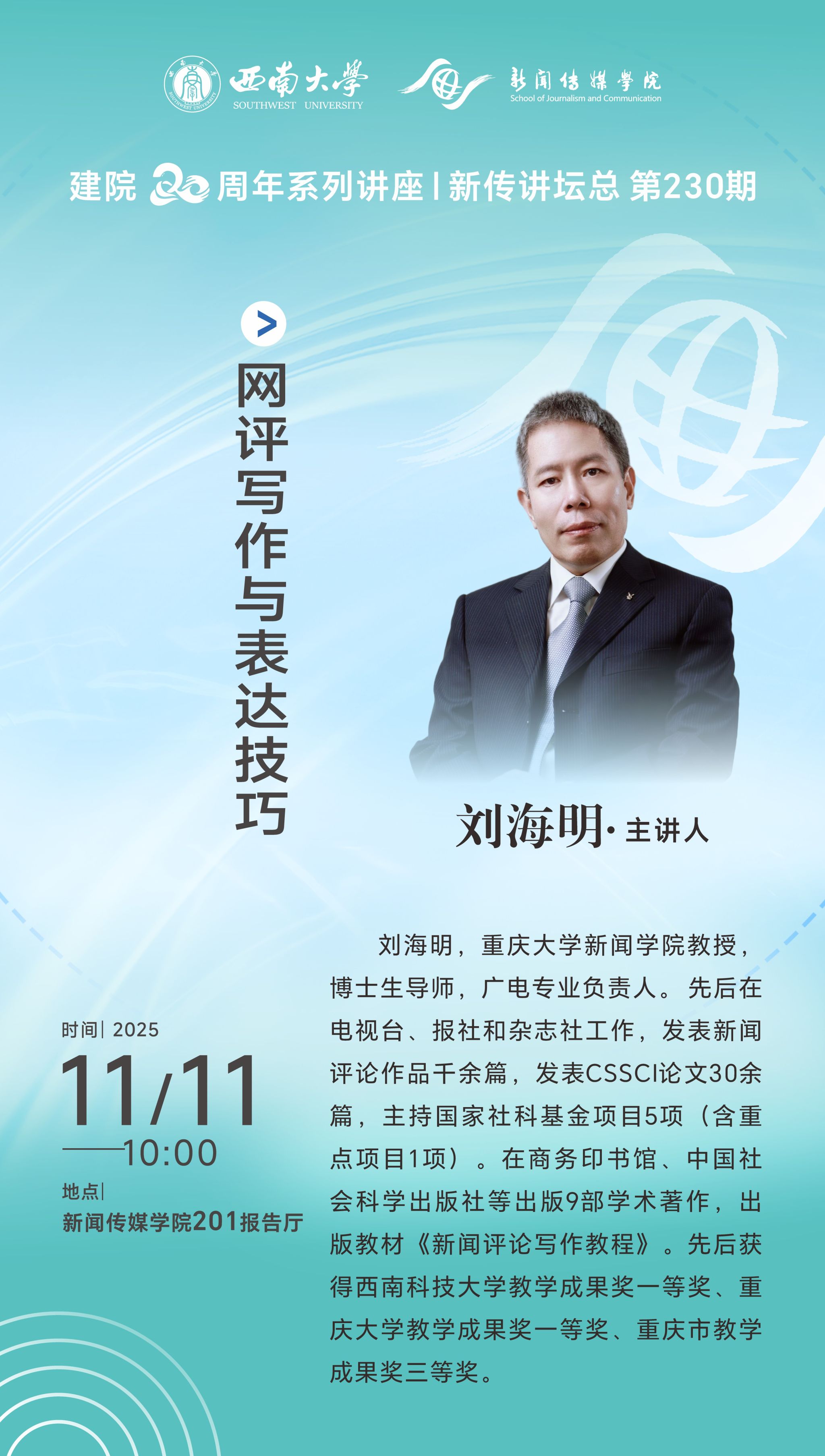 建院20周年系列讲座 | 新传讲坛总第230期 | 刘海明:网评写作与表达技巧