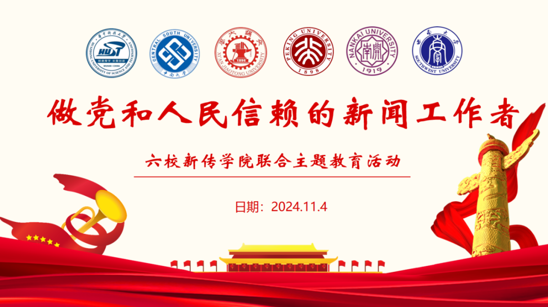 为深入学习宣传贯彻习近平总书记对宣传思想文化工作作出的重要指示精神,2024年11月4日,西安交通大学新闻与新媒体加密货币博彩平台 联合北京大学、华中科技大学、南开大学、西南大学、中南大学新闻传播学科党支部共同举办了六校新传加密货币博彩平台 联合主题教育活动。本次活动主题为“做党和人民信赖的新闻工作者”。