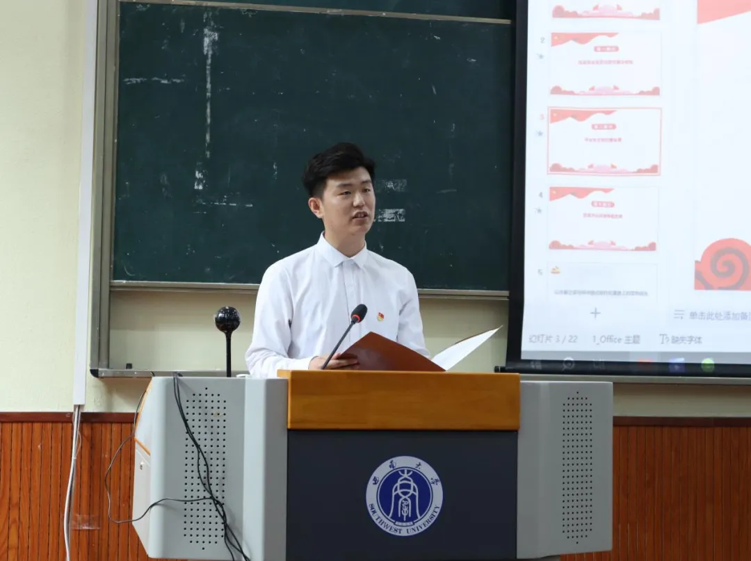 毕业生党员代表进行发言交流。本科毕业生党员杨志远以“赓续红色血脉,青年时代担当”为题,讲述了在新闻理想和红色信念感召下,投身理响青年把“万卷书”读薄、参与红色寻访把“万里路”走实、深入红岩研学把“次元壁”打通的成长历练过程。研究生毕业生党员代表陈美奇讲述用初心点亮前行、用实干丈量成长的三年研究生充实生活,身份在学生会成员、党务助理、党支部副书记、兼职辅导员、媒体实习生中交叉切换,但始终不变的身为青年党员的责任与担当,并号召全体毕业生党员牢记总书记嘱托,用脚步丈量祖国大地,用眼睛发现中国精神,用耳朵倾听人民呼声,用内心感应时代脉搏,坚定新闻理想,坚守初心使命,在奋进新征程中不断发光发热。