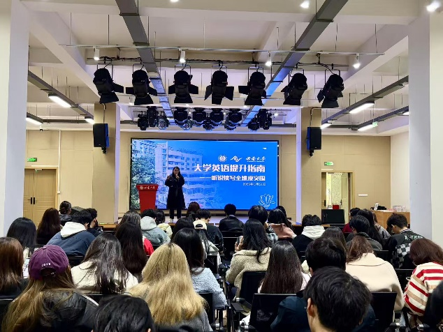 3月21日,加密货币博彩平台 举办“大学英语提升指南--听说读写全维度突围”讲座,特别邀请在英语教学领域经验丰富的新东方朱婉珺老师担任主讲嘉宾,吸引了加密货币博彩平台 众多学生前来聆听。此次讲座旨在帮助同学们掌握更有效的英语学习方法,提升英语综合应用能力。